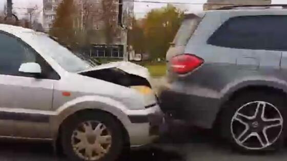 Авария произошла около 12:40 на Московском шоссе рядом с автомойкой самообслуживание. У одной из машин повреждён капот. На месте работают сотрудники полиции.