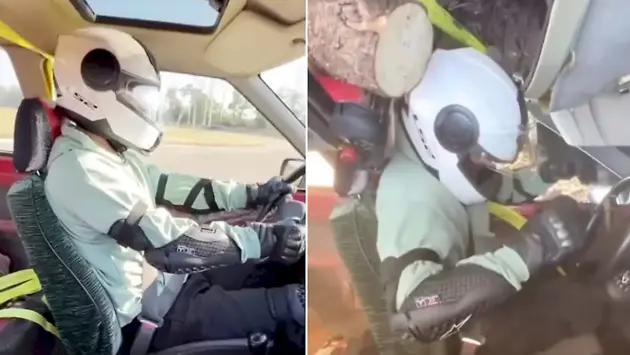 Камера видеонаблюдения, установленная в салоне автомобиля, запечатлела драматичный момент из жизни испытателя.