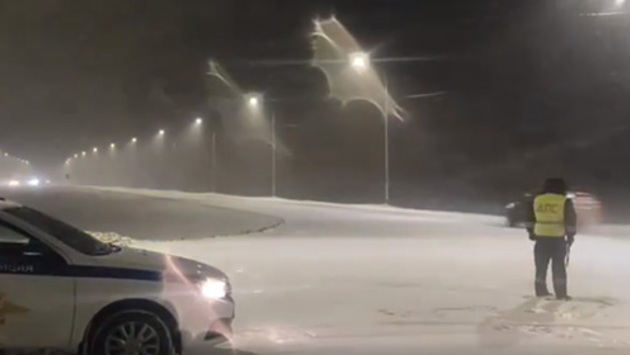 ГИБДД усилила контроль на самых аварийных участках дороги в связи с сильным снегопадом.