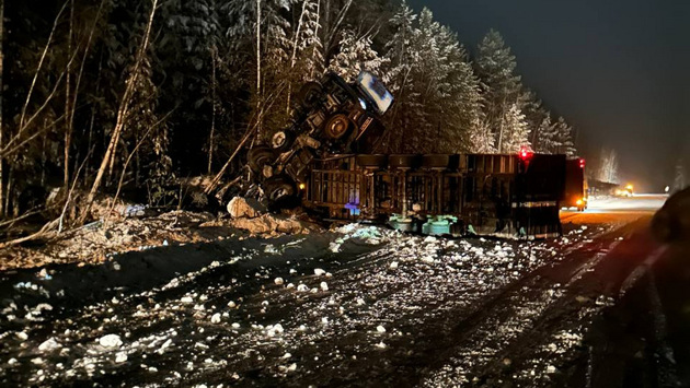 В Свердловской области произошло массовое ДТП произошло на трассе P352 Екатеринбург — Нижний Тагил. В ДТП пострадали четыре автомобиля: две фуры перевернулись, «Газель» и Mazda упали в кювет. Об этом сообщил с места событий корреспондент URA.RU.