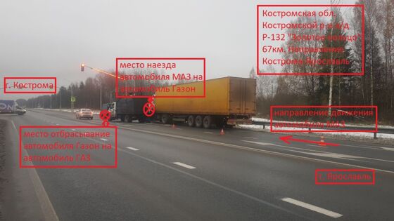 Под Костромой столкнулись три фуры, узнал KOSTROMA.TODAY. По информации пресс-службы регионального УГИБДД, сообщение о ДТП поступило 31 октября около 15 часов. На въезде в город со стороны трассы Кострома- Ярославль 62-летний мужчина ехал на большегрузе МАЗ с полуприцепом, не уследил за дорожной ситуацией и врезался в машину марки “Газон”, которая стояла на обочине, и улетел в отбойник.