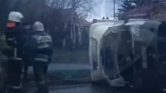 К месту аварии прибыли сотрудники ДПС и пожарный автомобиль.