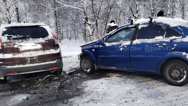 Автомобили столкнулись на скользкой дороге в кузбасском поселке