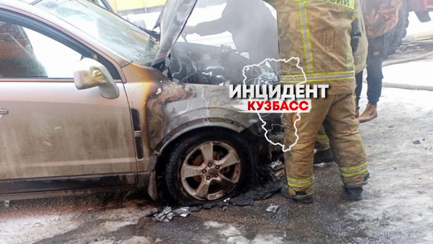 В кузбасском городе среди бела дня самовоспламенилась легковушка. Очевидец заснял пламя на видео.