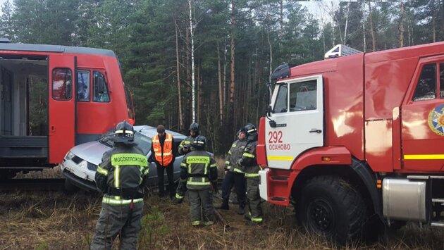 Электричка в Подмосковье протаранила выехавший на красный автомобиль
