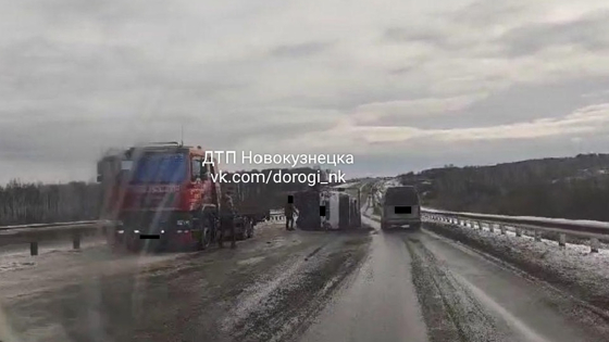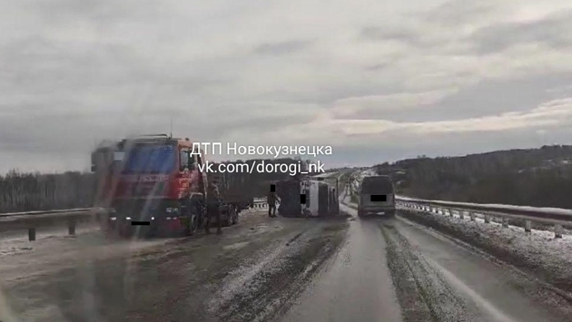 В Кузбассе на трасе перевернулся грузовой автомобиль.