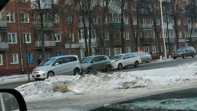 На одной из улиц в Кемерове произошло ДТП с участием трех автомобилей.