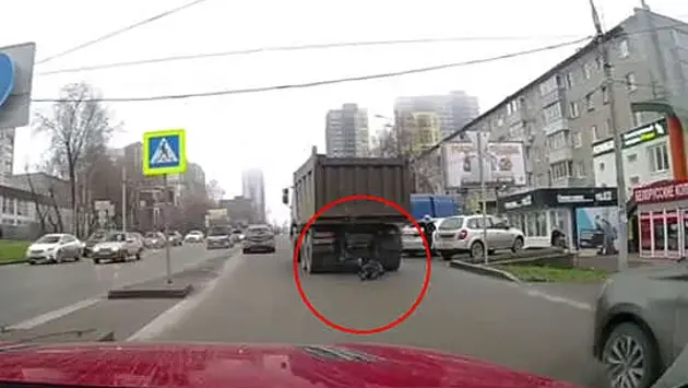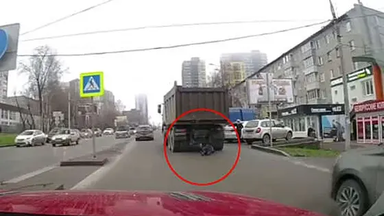 После того, как водитель другой машины подал звуковой сигнал, грузовик остановился. Собравшиеся на месте происшествия прохожие помогли пострадавшей подняться на ноги и отвели ее на обочину. О том, привлечен ли водитель самосвала к ответственности, не сообщается.