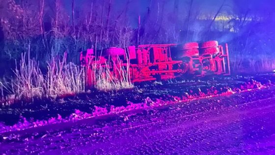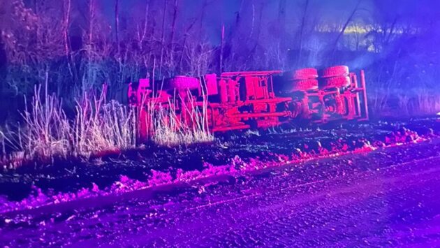Самосвал вылетел с саратовской трассы и перевернулся