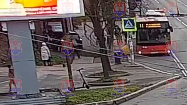 Камеры сняли, как машина сбила людей на остановке в Калининграде