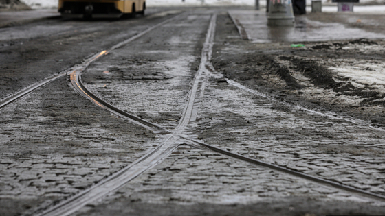 В екатеринбургском районе Уралмаш автомобиль Nissan врезался в трамвай, из-за чего образовалась пробка. Об этом рассказал очевидец ДТП.