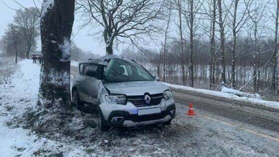 В Зеленоградском районе Renault занесло на скользкой дороге, машина вылетела в дерево. Об этом сообщает пресс-служба регионального УМВД.