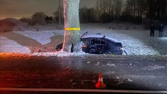 Под Багратионовском легковушка попыталась объехать пешехода на дороге и через встречку вылетела в дерево