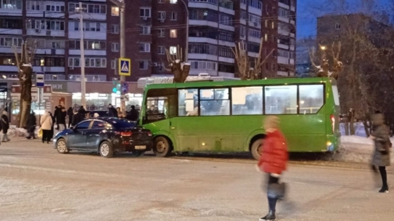 В Екатеринбурге легковушка протаранила автобус № 82 на улице Сулимова
