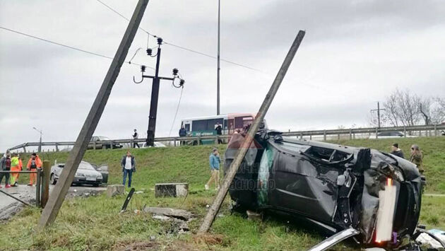 На фото и видео с места происшествия видно, что немецкий автомобиль в результате аварии опрокинулся набок, также у него смята задняя часть крыши. Слетев с насыпи, неуправляемый BMW также врезался в седан Lifan, у этого автомобиля сильно деформирован кузов.