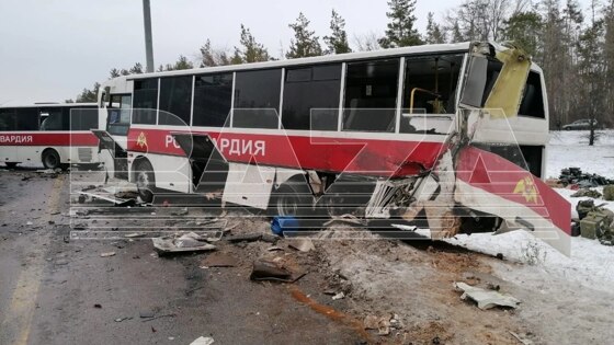 Baza: грузовик врезался в колонну Росгвардии в Воронежской области