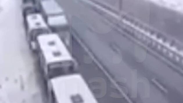 В Воронежской области на трассе М4 «Дон» фура протаранила колонну Росгвардии. ДТП попало в объектив камеры видеонаблюдения. Запись опубликовал Telegram-канал Mash.
