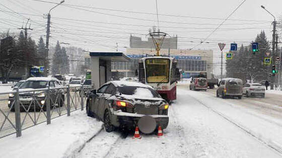 В Новосибирске машина влетела в остановку с маленьким ребенком