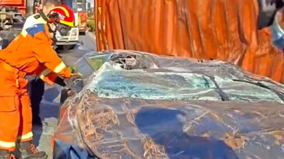 В Китае пассажиры легкового автомобиля не пострадали после того, как на их машину упал контейнеровоз, пишет Asia One. От удара легковая машина буквально расплющилась на дороге, сообщают местные СМИ. Несмотря на серьезность ДТП, двое пассажиров, находящихся внутри легковушки, "не получили даже царапин". Они были зажаты конструкцией машины и не смогли выбраться самостоятельно. Сообщается, что внутри контейнера находилось около 30 тонн деревянных досок. Поэтому для подъема грузовика пришлось вызывать два крана. После этого пассажиров раздавленной машины отвезли в больницу, где врачи подтвердили, что они не получили травм. Расследование происшествия показало, что ДТП произошло по вине водителя контейнеровоза. Он решил проехать перекресток вместо того, чтобы остановиться.