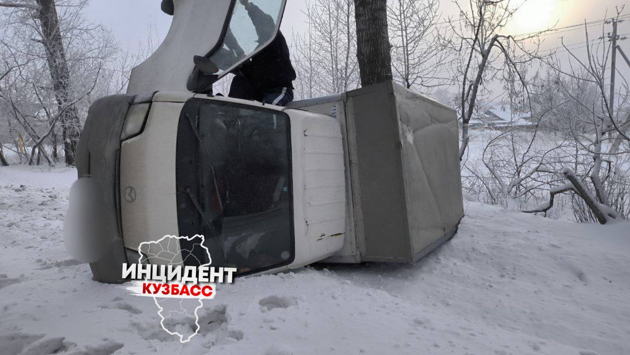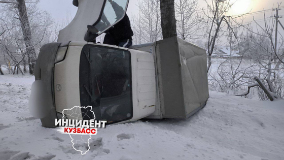Очевидцы сообщили, что на одной из улиц в Кемерове на бок опрокинулся грузовой автомобиль.