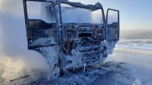 Грузовик дальнобойщиков из Приморья сгорел на трассе в Сибири