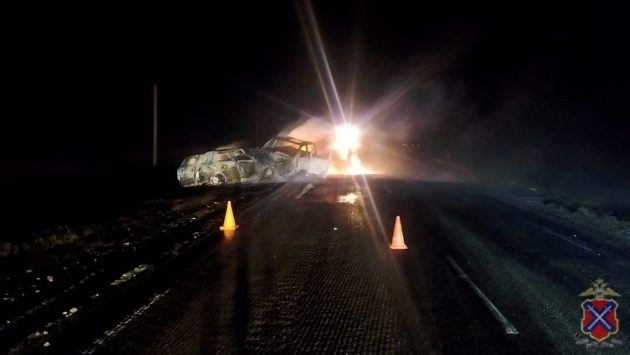 В Волгоградской области двое людей погибли в загоревшейся иномарке
