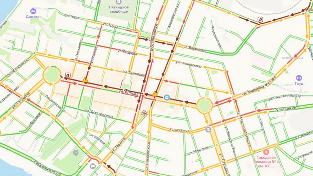 Движение по нечетной стороне улицы Кирова в Калуге полностью парализровано на всем протяжении этой улицы из-за аварии, которая произошла в районе сквера Мира около четырех часов дня 11 декабря. Столкнулись автобус и маршрутка. Четная сторона улицы едет, хоть и медленно. Согласно данным сервиса «Яндекс. Пробки», движение также серьезно затруднено на примыкающих к улице Кирова участках улиц Ленина, Рылеева и Московской. Из-за другой аварии парализовало Грабцевское шоссе на участке, примыкающем к улице Карла Либкнехта.