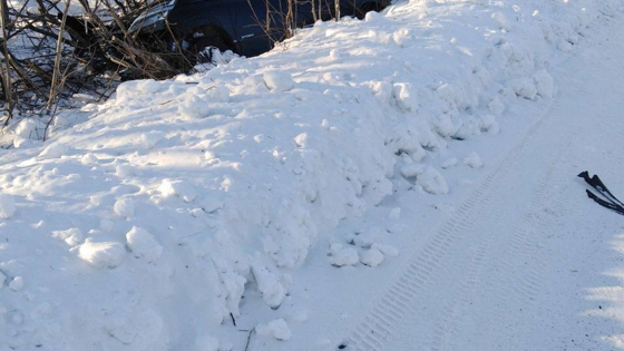 В Кузбассе водитель автомобиля не справился с управлением и оказался в сугробе.