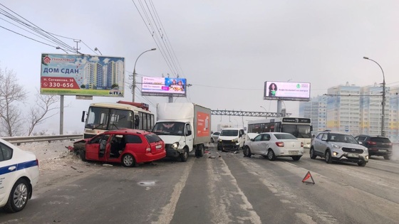 В ГИБДД Новосибирска назвали причину массового ДТП на Димитровском мосту.