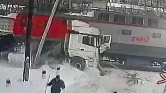 В Домодедове поезд снес фуру, которая встала прямо на железнодорожном переезде. Инцидент попал на видео, которое опубликовала транспортная прокуратура. На кадрах видно, как больше груз стоит посреди путей.