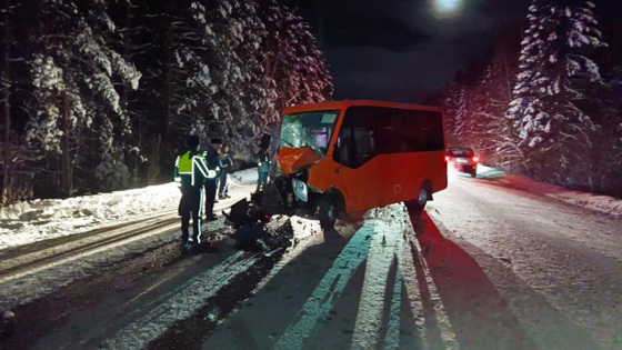 «Водитель коммерческого автобуса (маршрут Висимо-Утка — Нижний Тагил) не выдержал безопасную дистанцию и допустил столкновение с впереди движущимся фронтальным погрузчиком. В салоне автобуса находились десять пассажиров, один из них пострадал — доставлен в больницу», — сказали в ведомстве.
