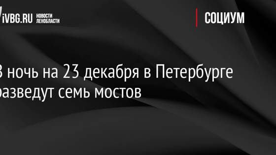 В ночь на 23 декабря в Петербурге разведут семь мостов