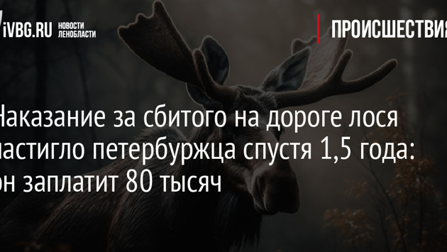 Наказание за сбитого на дороге лося настигло петербуржца спустя 1,5 года: он заплатит 80 тысяч