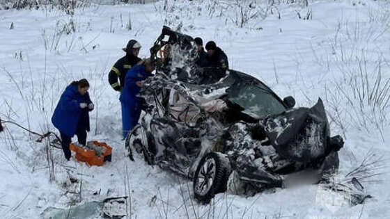 Тепловоз и легковушка столкнулись в Ивановской области. Об этом сообщает Telegram-канал МЧС по региону. Инцидент произошел недалеко от населенного пункта Иудкино. "Произошло столкновение тепловоза, следовавшего по маршруту Иваново-Беляково и легкового автомобиля Kia. Пожарные деблокировали 1 человека. Всего в результате ДТП пострадали 5 человек, в том числе 3 детей", - говорится в сообщении. Отмечается, что пострадавшие люди были госпитализированы в ближайшую больницу. Судя по фото, при столкновении автомобиль отбросило на обочину. Машина получила серьезные повреждения кузова, сработали подушки безопасности. Скорее всего автомобиль не подлежит восстановлению. До этого стало известно, что автомобильная авария с участием двух грузовиков произошла на трассе М-11 в сторону Москвы. На скользкой дороге столкнулись два грузовика и несколько седанов — черная Toyota разбилась всмятку. Пострадавшие, находившиеся в иномарке, госпитализированы, на месте работают оперативные службы. Движение транспорта частично перекрыто.
