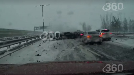 Более 60 автомобилей столкнулись на трассе в Новгородской области