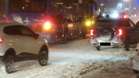 В Кемерове автобус столкнулся с легковым автомобилем.