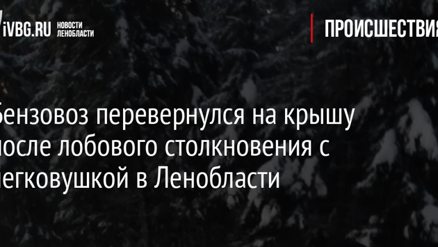 Бензовоз перевернулся на крышу после лобового столкновения с легковушкой в Ленобласти