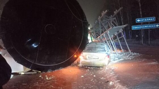 Вечером 15 января на территории Завьяловского района водитель 1978 года рождения за рулём тягача «Ситрак» при проезде эстакады не учёл габариты авто и снёс конструкцию, что стало причиной падения цистерны.
