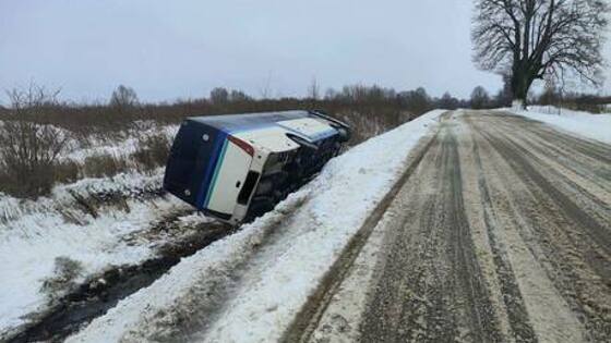 По дороге в Гусев автобус с пассажирами выехал на встречку и опрокинулся в кювет