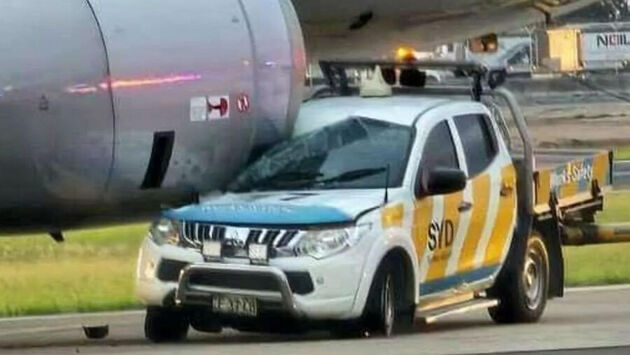 В аэропорту австралийского Сиднея пикап Mitsubishi L200, принадлежащий аэропортовым службам, врезался в двигатель авиалайнера Airbus A320. Об этом сообщает skynews.com.au.
