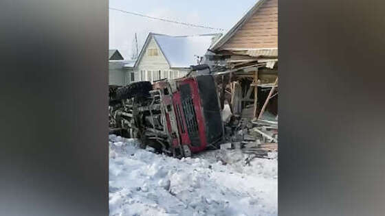 В Сибири грузовик опрокинулся на стену частного дома