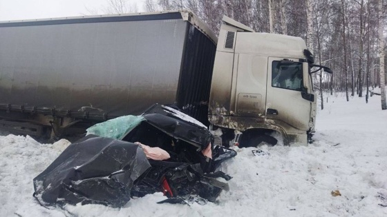 Несколькими часами ранее на той же трассе под Ишимом большегрузы КамАЗ и Freightliner расплющили Chevrolet Niva.