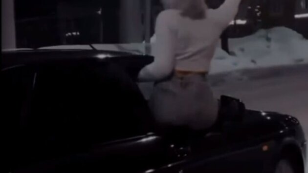 На обнаруженном видео видно, как автомобиль «Лада Приора» едет по улицам Ижевска, а из пассажирского окна наполовину высунулась девушка.