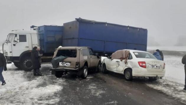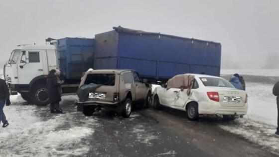 Две легковушки врезались в КАМАЗ с прицепом в Курской области
