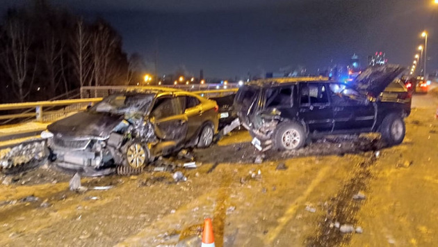 Массовое ДТП на мосту произошло вечером 12 февраля. Машины перегородили проезд для других автомобилей. На месте происшествия работают медики и сотрудники МЧС.