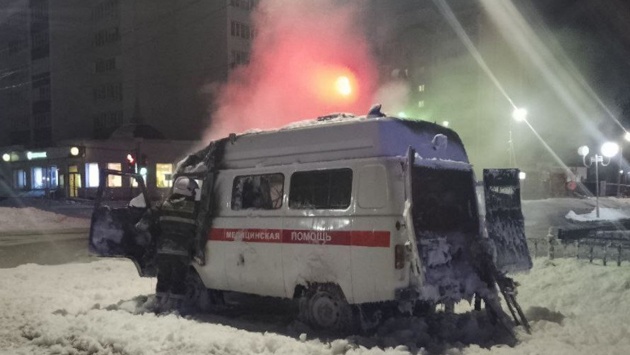 По данным ведомства, произошло это в четвертом часу утра по местному времени, когда скорая везла пациента. Из горящей машины благополучно эвакуировались водитель, фельдшер и пациент.