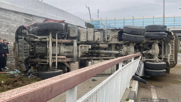 В Сочи грузовик с песком перевернулся на объездной дороге