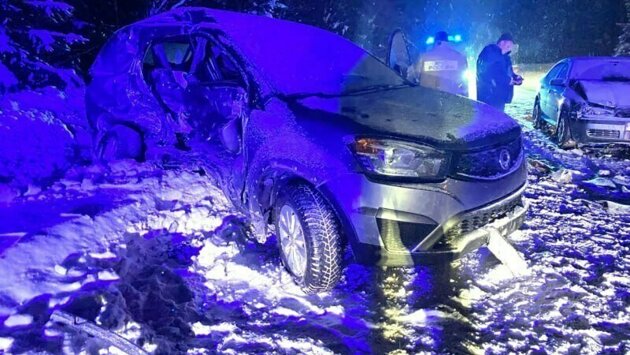 Как сообщает УМВД России по Кировской области, водитель автомашины «Санг Йонг», 1969 года рождения, выехал на полосу встречного движения, где совершил столкновение с «Валдаем», двигавшимся ему навстречу. После этого с «Валдаем» по ходу движения столкнулась еще одна машина «Шкода Октавия».