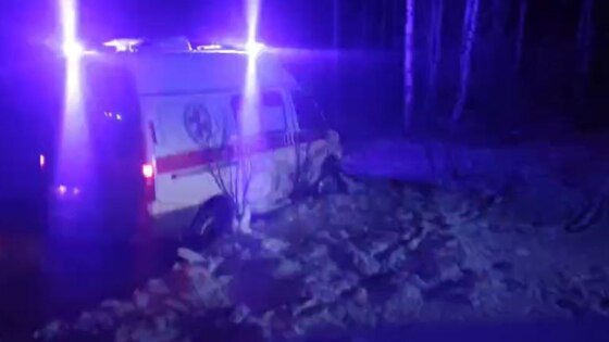 Скорая оказалась в кювете после ДТП