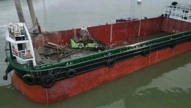 В Китае капитан сухогруза не справился с управлением и врезался в мост. Целый пролет рухнул в воду, сообщает «МИР 24».